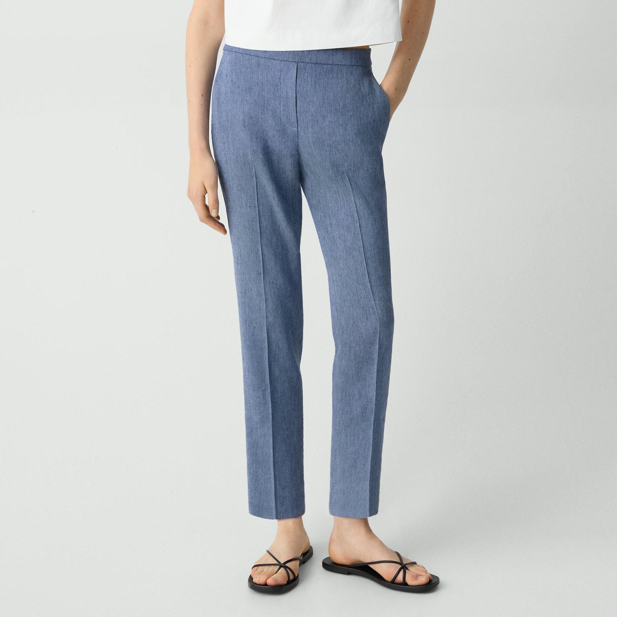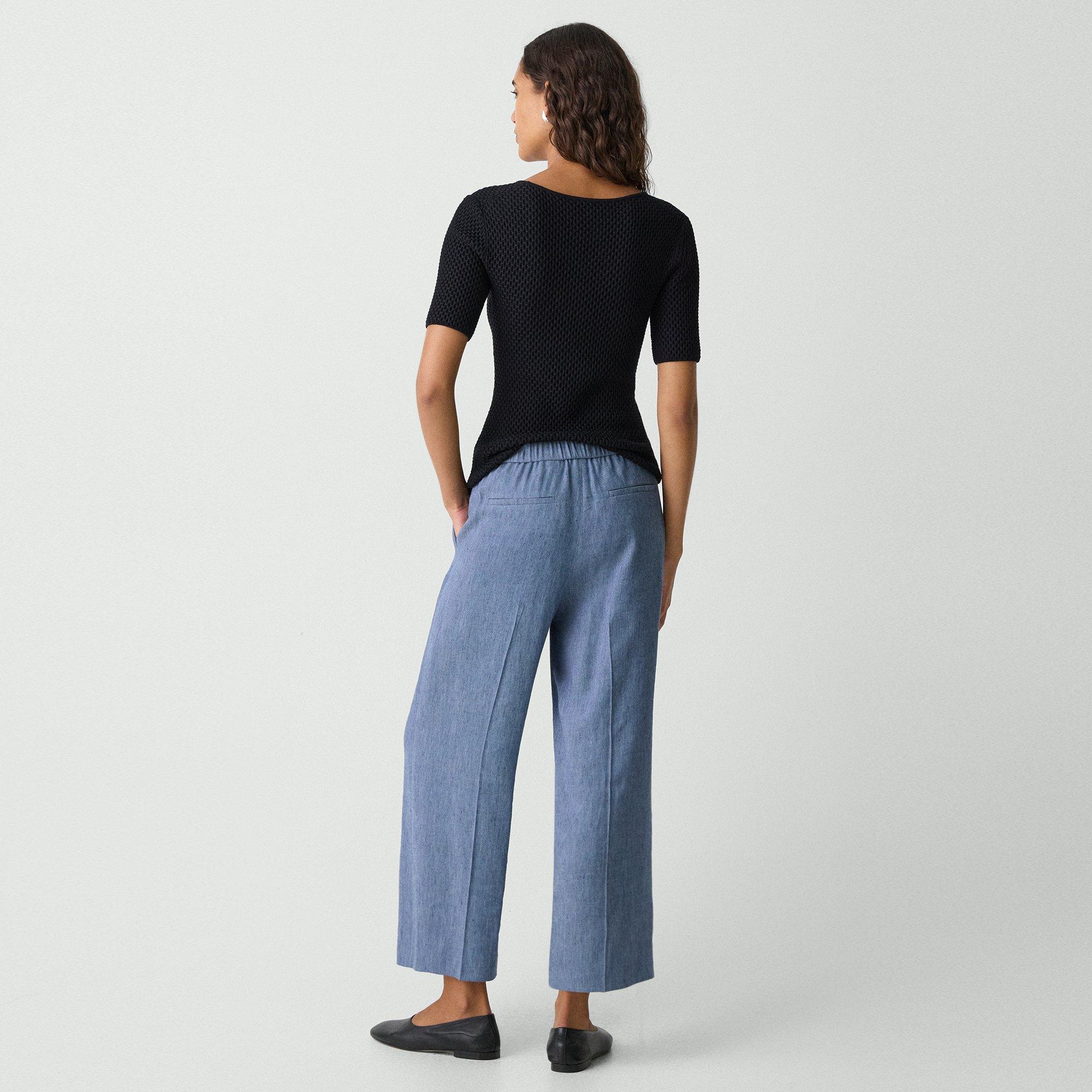 Crafted from yarn-dyed twill engineered to reflect the look of a classic denim fabric. Woven using specialty linen yarns, our responsibly-sourced linen and viscose fibers offer superior comfort and breathability. These relaxed silhouettes are easily dressed up for dinner or down by the pool.